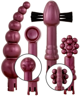 Please Note: The French Legionnaire's Moustache® and Seven Pearls of the Orient® are both included with the Eroscillator® 2 Top Deluxe. Do not fully insert the attachment when using the Seven Pearls for anal stimulation.